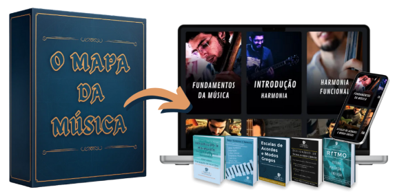 Você também vai receber o Mapa da Música que é um material em PDF + Aula em vídeo explicando toda a sequência lógica dos assuntos que você deve estudar na teoria musical.