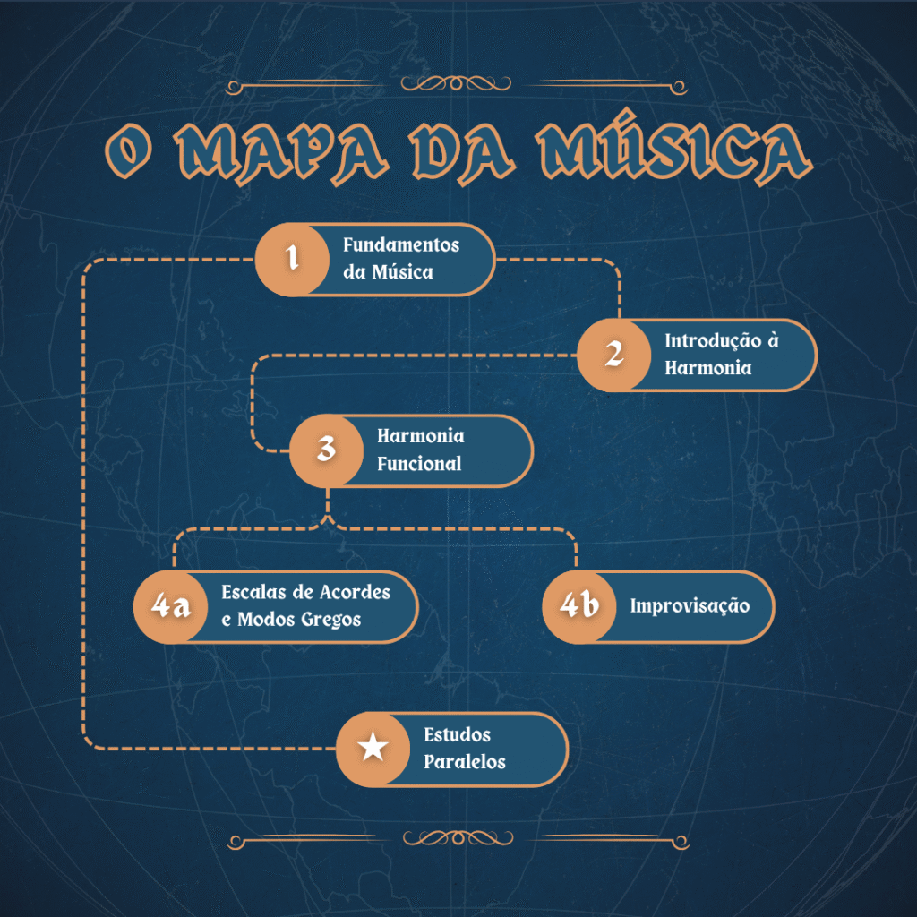 No Mapa da Música você terá acesso a uma rota completa que organiza os assuntos musicais na ordem certa.